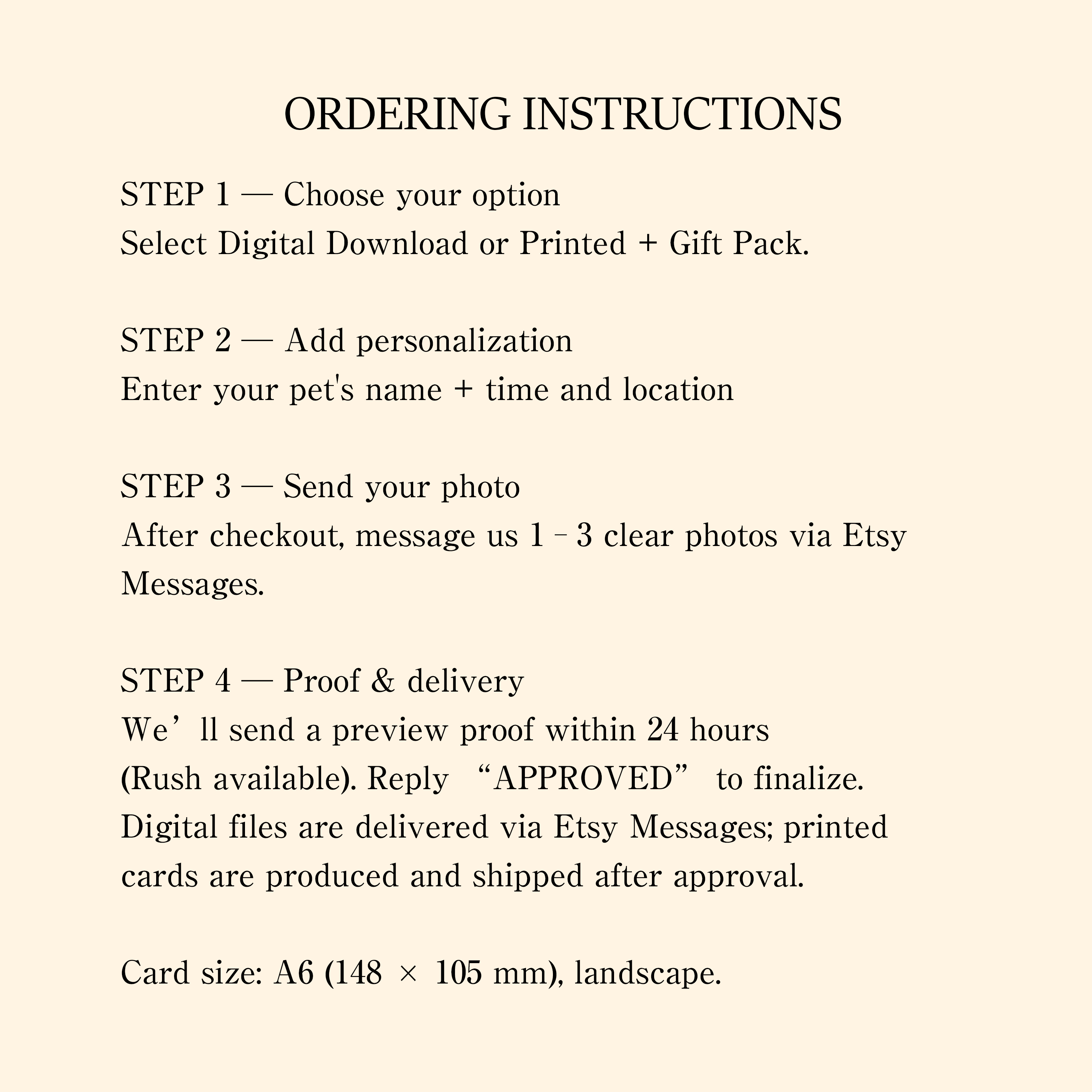 This personalized pet birthday memory card is created from your pet’s photo and your words—clean, heartfelt, and made to be kept. A preview proof is provided before final delivery.